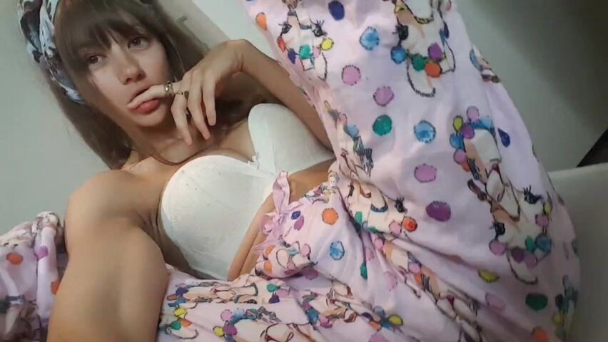 Прямо в пижаме крошка с большими натуральными сиськами устраивается на кровати для интимных ласк. Она расстегивает пуговицы, обнажая свои массивные бидоны и запуская руку в трусики. Девчонка активно трет клитор, пуская слюни от возбуждения и громко стоная на всю спальню. Её мастурбация выглядит по-настоящему грязной и страстной: пальцы входят в мокрую щелку, заставляя сучку выгибаться дугой. Всё заканчивается тем, что крошка кончает в конвульсиях, поглаживая грудь.